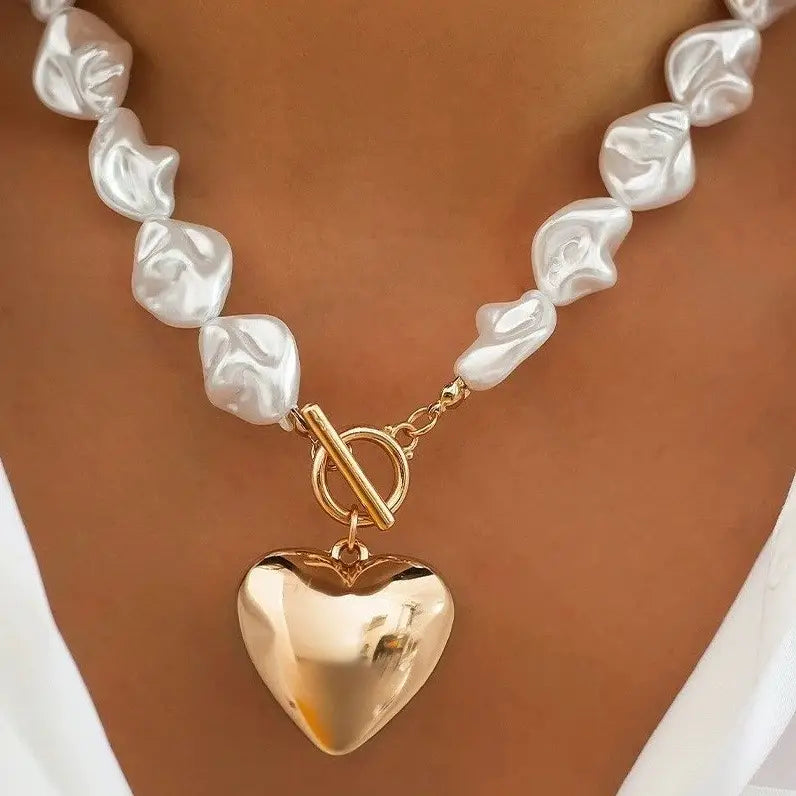 Miss. Pearls Necklace, featuring lustrous pearl beads and a delicate heart charm, this necklace exudes sophistication with a touch of charm. The stylish toggle closure adds a modern accent while ensuring easy wear.