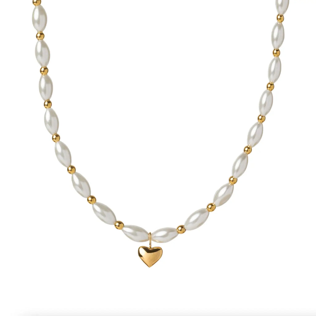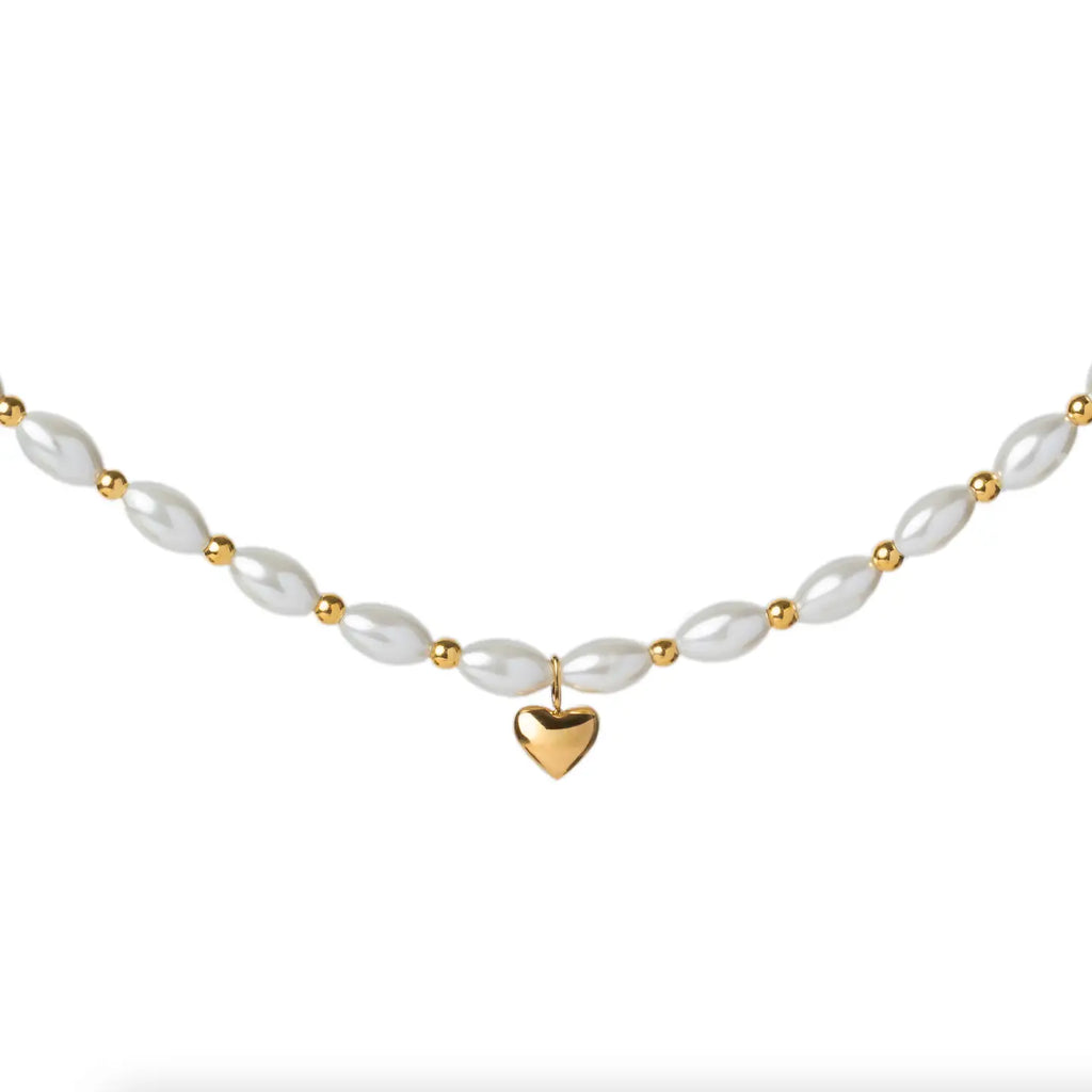 Our bestselling necklace, now upgraded with natural white shell beads and a gold heart charm. Versatile, and perfect for everyday wear or any occasion. A timeless favorite reimagined.