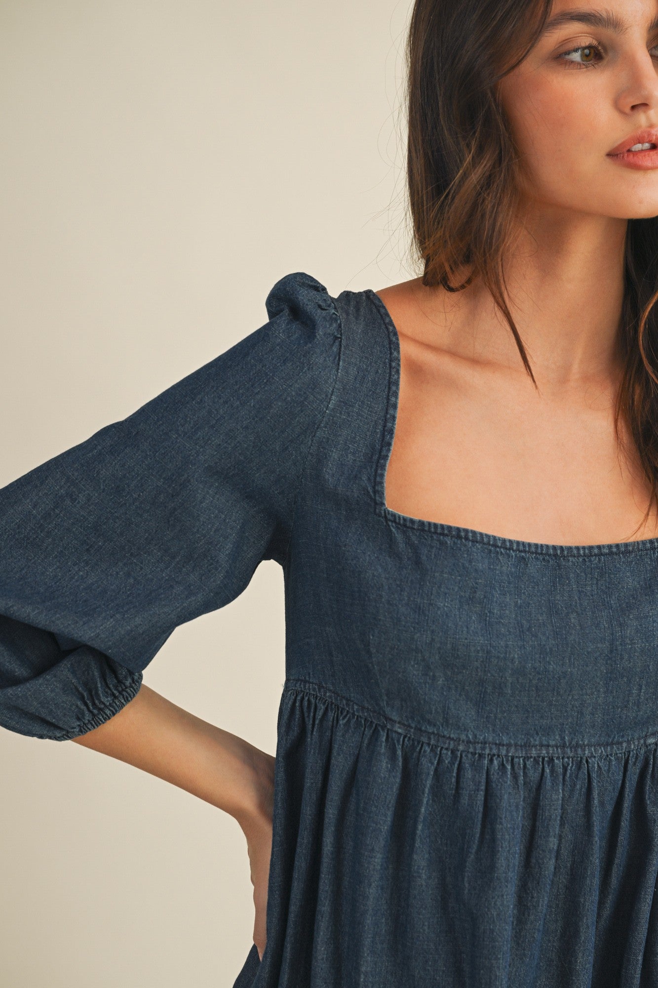 Effortlessly chic and ready for anything, The Saturday Market Dress features a flattering square neckline and adjustable tie-back closure for a custom fit. Crafted in rich dark denim, this simple yet adorable piece transitions seamlessly from weekend farmers markets to casual coffee dates. The clean silhouette lets the quality fabric shine, making it a versatile wardrobe essential that pairs with sneakers or sandals. Perfect for those who love understated style with just the right amount of personality. Bonus, is fully lined!