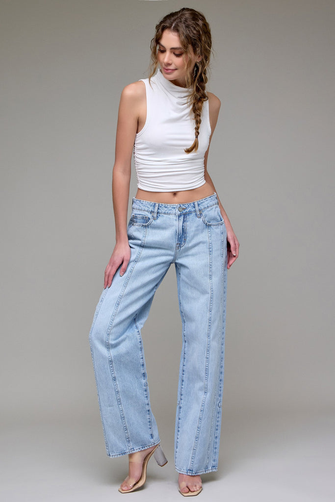 These light wash, seamed dad jeans bring relaxed comfort with a playful twist. Designed with a roomy fit and stretchy fabric, they move with you while keeping cozy pockets handy. Perfect for layering in fall, they add effortless style to your casual wardrobe.