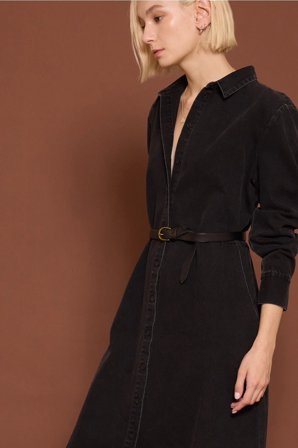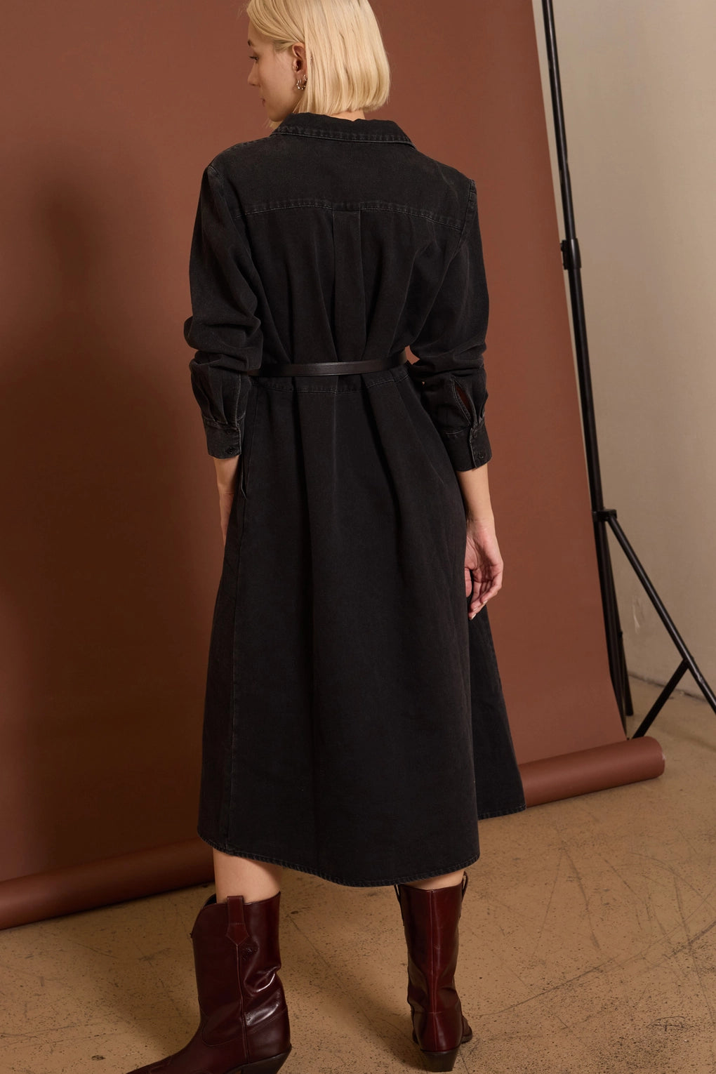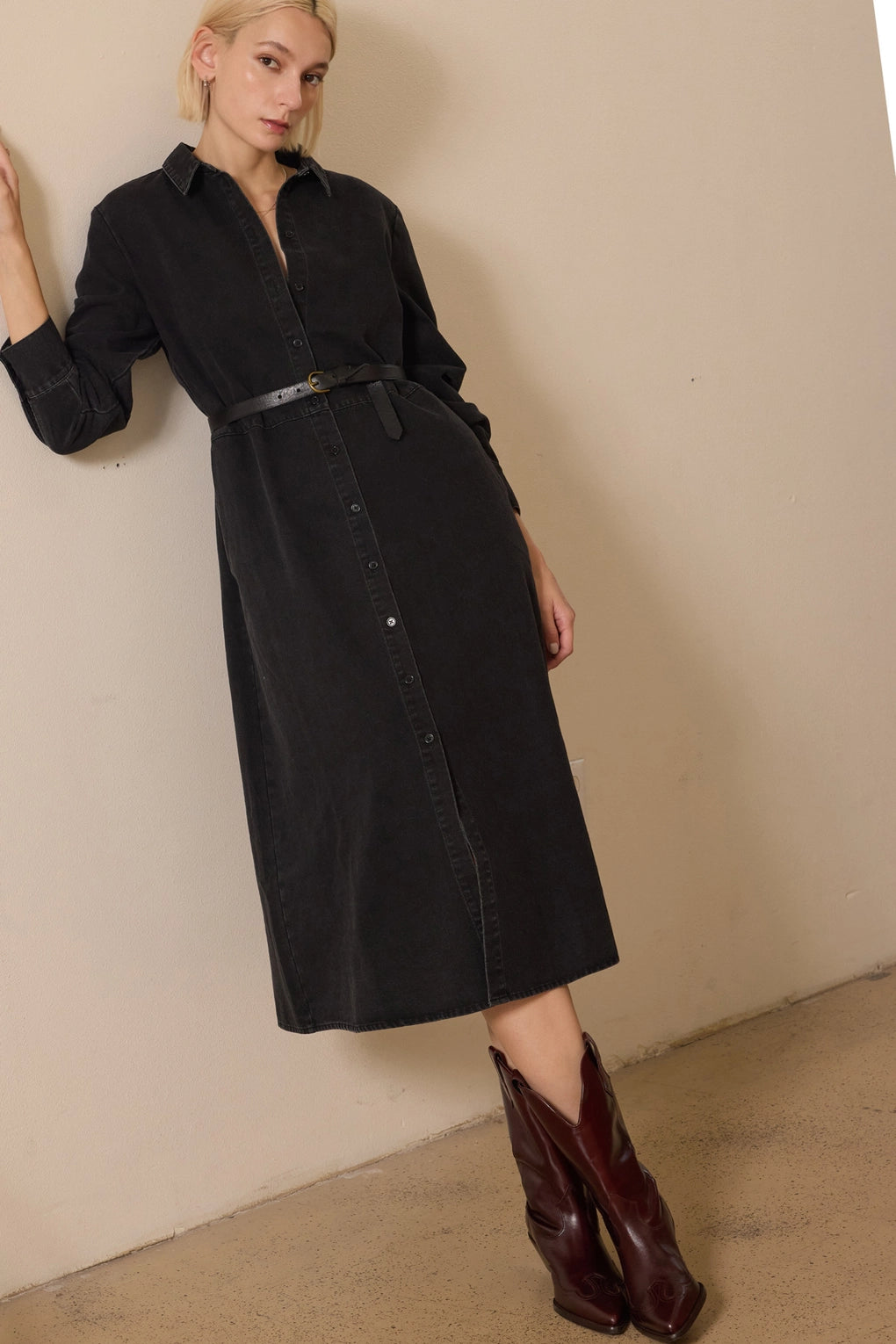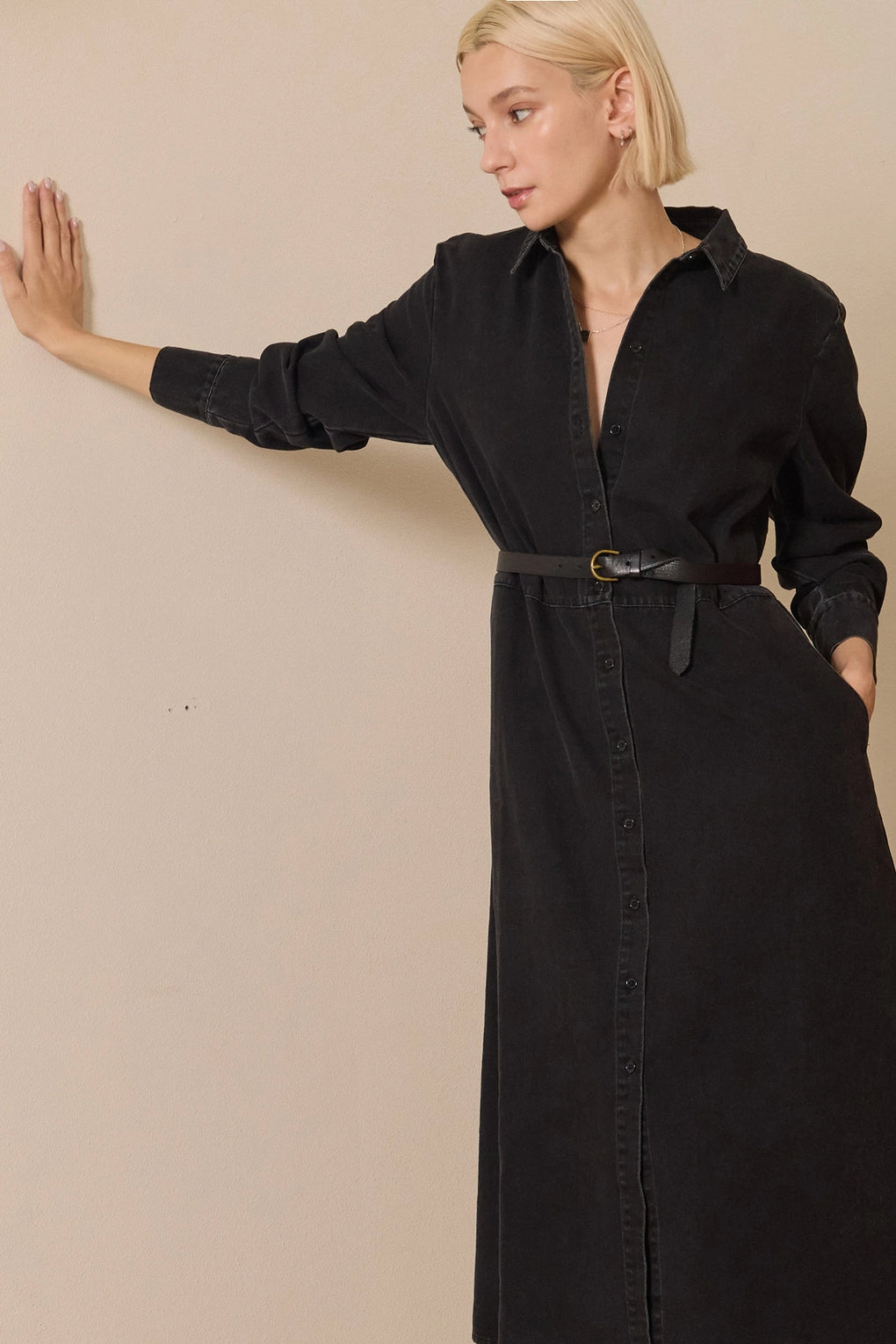 Straight from your Pinterest board and into your closet—this is the black denim dress you've been pinning for months. Crafted from lightweight, breathable denim that drapes beautifully without clinging, it's the perfect balance of effortless and put-together. Classic button-front styling keeps things timeless, while the relaxed fit makes it your new go-to for everything from coffee runs to weekend adventures. Dress it up with heels or down with sneakers—either way, you'll look like you just stepped out of your favorite fashion inspiration feed.