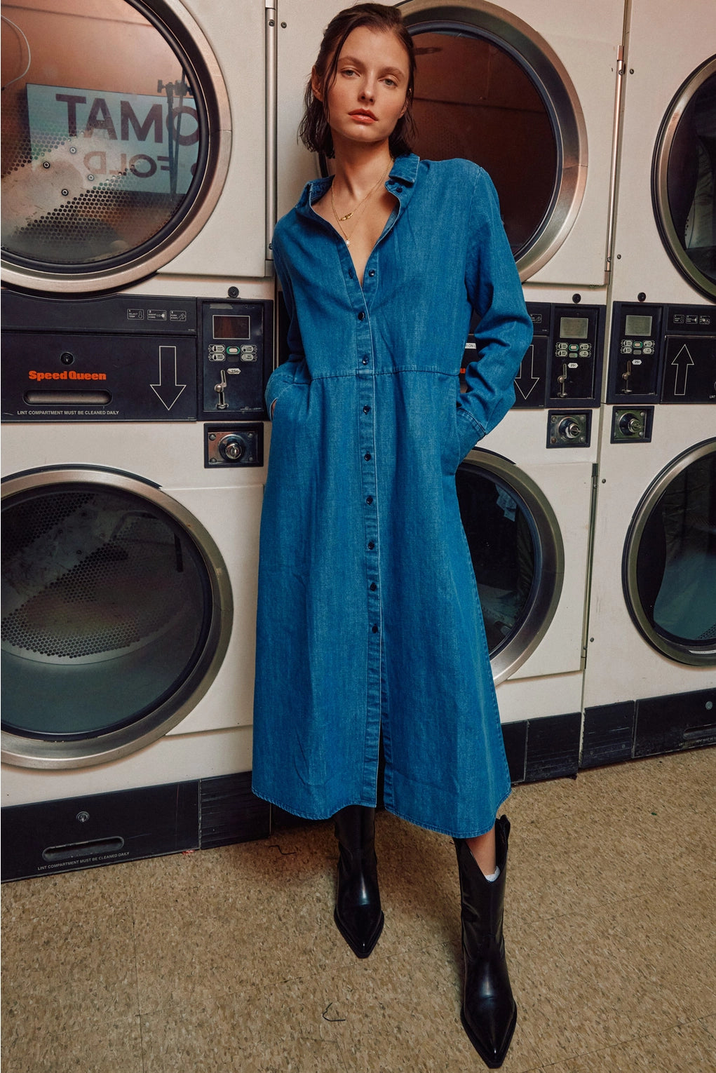 Straight from your Pinterest board and into your closet—this is the denim dress you've been pinning for months. Crafted from lightweight, breathable denim that drapes beautifully without clinging, it's the perfect balance of effortless and put-together. Classic button-front styling keeps things timeless, while the relaxed fit makes it your new go-to for everything from coffee runs to weekend adventures. Dress it up with heels or down with sneakers—either way, you'll look like you just stepped out of your favorite fashion inspiration feed.