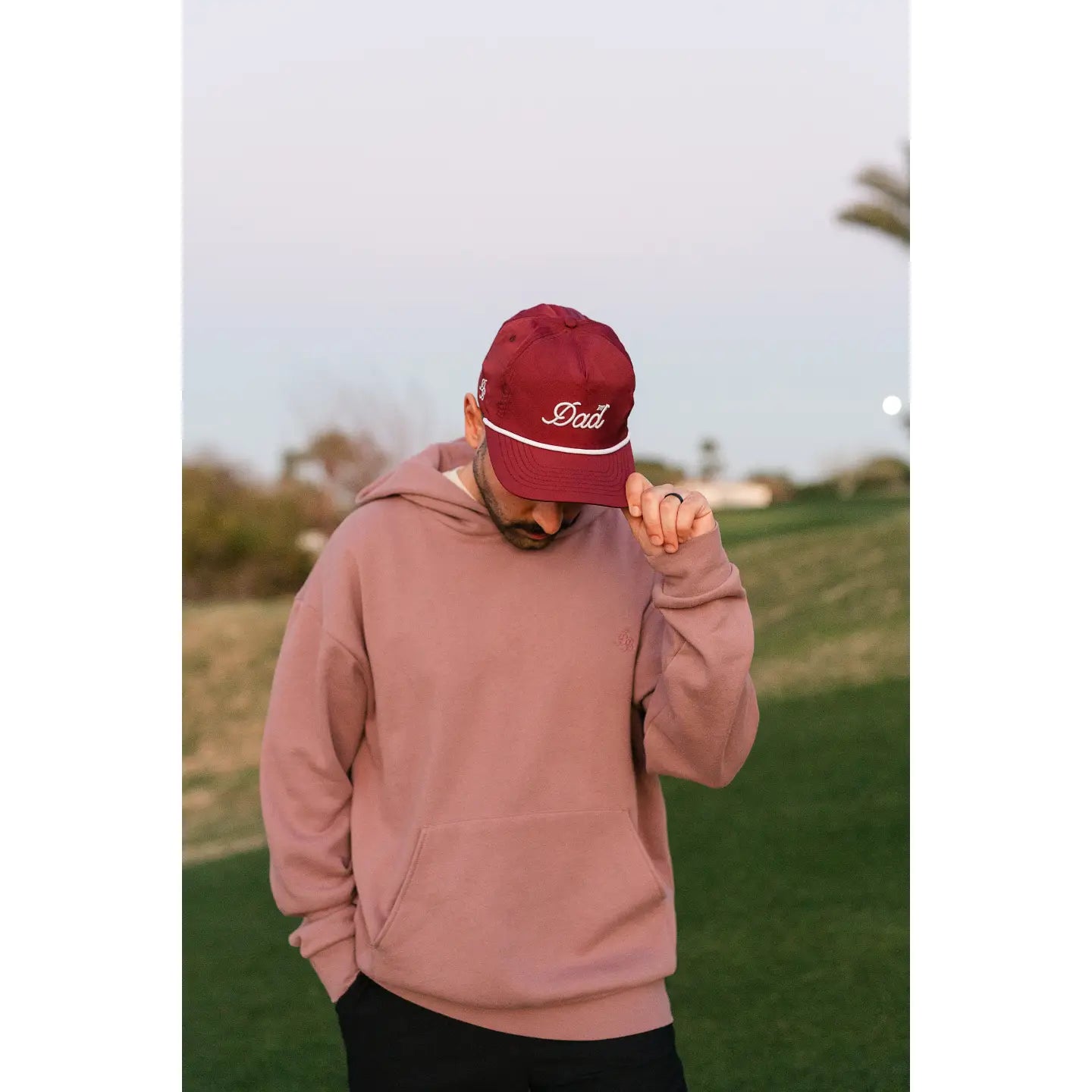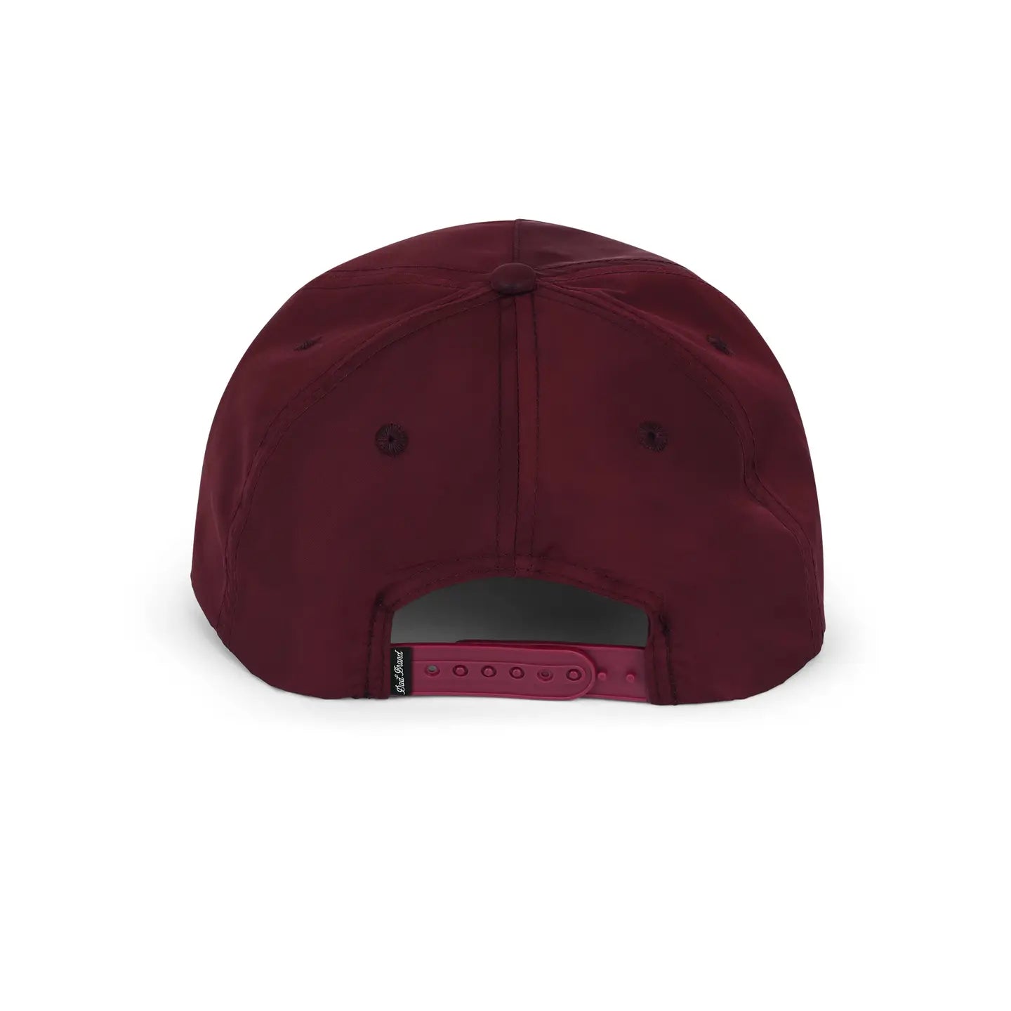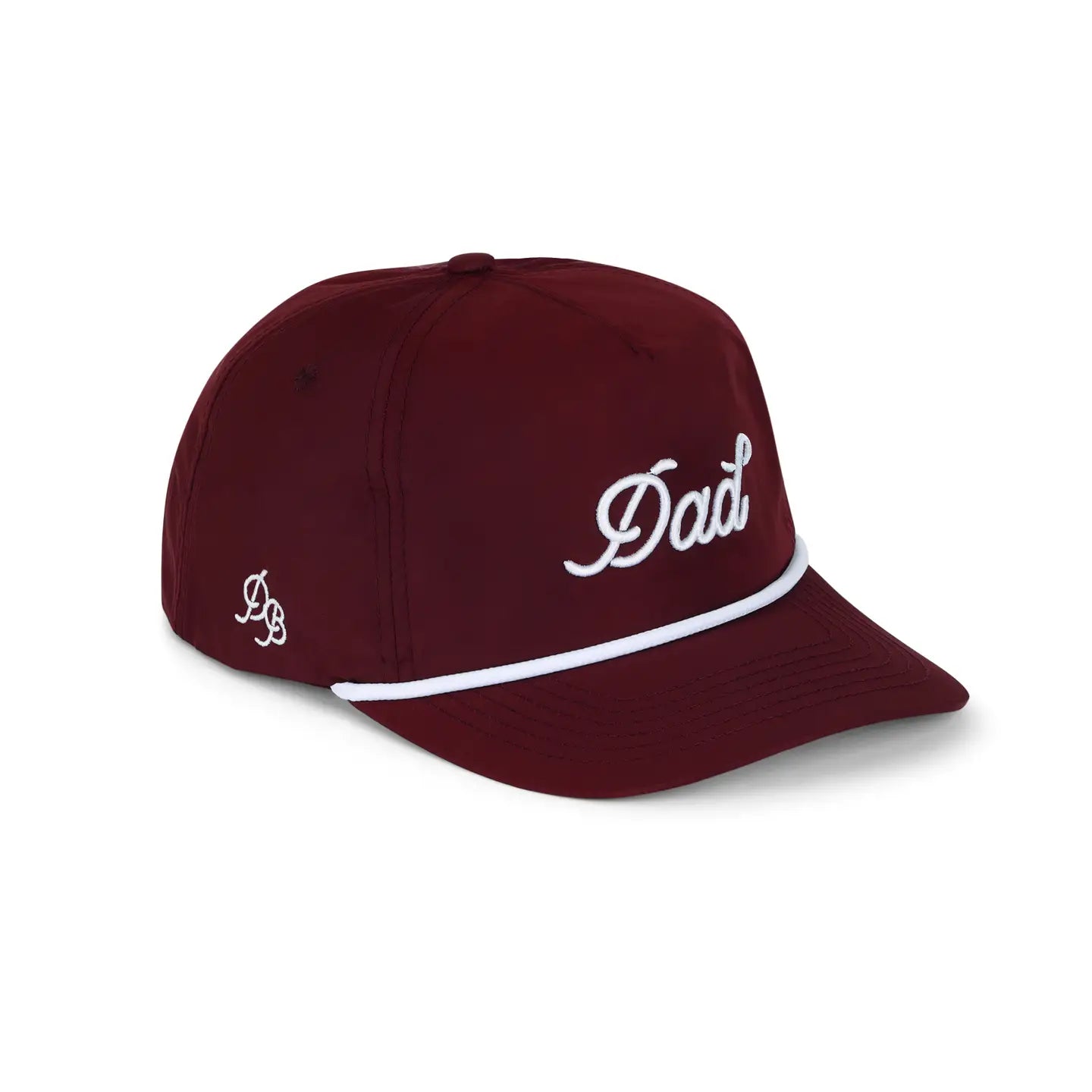 Rock that laid-back vibe with this burgundy 5-panel snapback rope hat. Featuring crisp white rope detailing and eye-catching 3D puff embroidery, it's the perfect blend of style and comfort. Crafted from 100% polyester, this lightweight cap won't weigh you down—whether you're running errands or hanging out with friends. The adjustable snapback closure ensures the perfect fit every time. Dad hat energy, zero fuss.