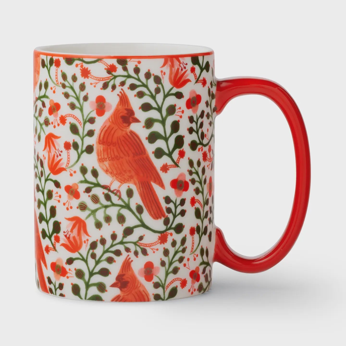 With elegant cardinal illustrations and a red handle and rim, this seasonal porcelain mug brings a bit of cheer to the morning routine.