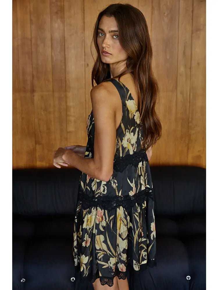 Make a statement this season in the Under The Mistle Toe Dress—a show-stopping mini that's equal parts elegance and fun. Crafted from a luxurious woven polyester-spandex blend with silky satin finish, this sleeveless stunner features a plunging V-neckline that commands attention. Tiered flare layers add movement and dimension, while delicate lace trim details elevate the look with sophisticated flair. Unlined for a lightweight, breathable feel. Perfect for holiday parties, date nights, or whenever you want to turn heads and feel absolutely fabulous.