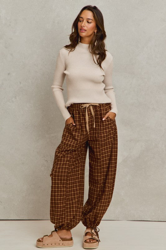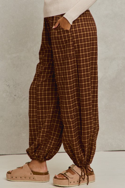 Step into comfort with CoCo's Checkered Plaid Joggers—our best-selling style that's taking over! Rock the rich brown combo with its eye-catching plaid pattern while enjoying the perfect fit. Adjustable straps at the bottom let you customize the look, whether you're going for a sleek taper or a relaxed vibe. Perfect for lounging, running errands, or making a casual statement. These joggers are the wardrobe essential you didn't know you needed!