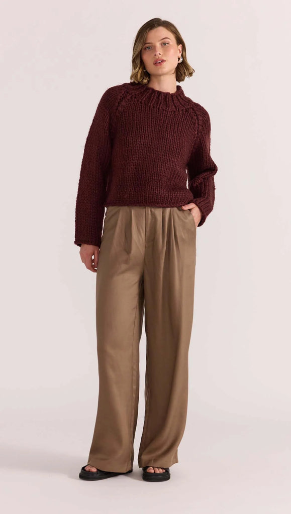 The definition of cosy chic. The Demi Chunky Jumper wraps you in ultra-soft warmth with a bold, hand-knit look that feels like a hug. In a rich wine hue, it's the statement knit your winter wardrobe's been waiting for.