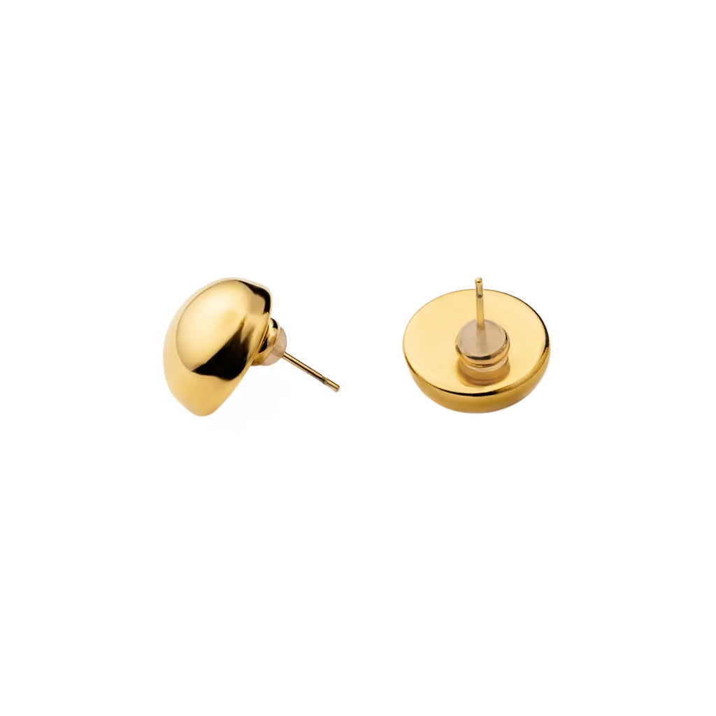 The Button Stud Earrings are designed with a gold, mirror-like finish, a true reflection of timeless beauty. Crafted with meticulous attention to detail, these earrings shiny gold surface creates a mesmerizing reflective surface, adding a touch of glamour and sophistication to ensamble.