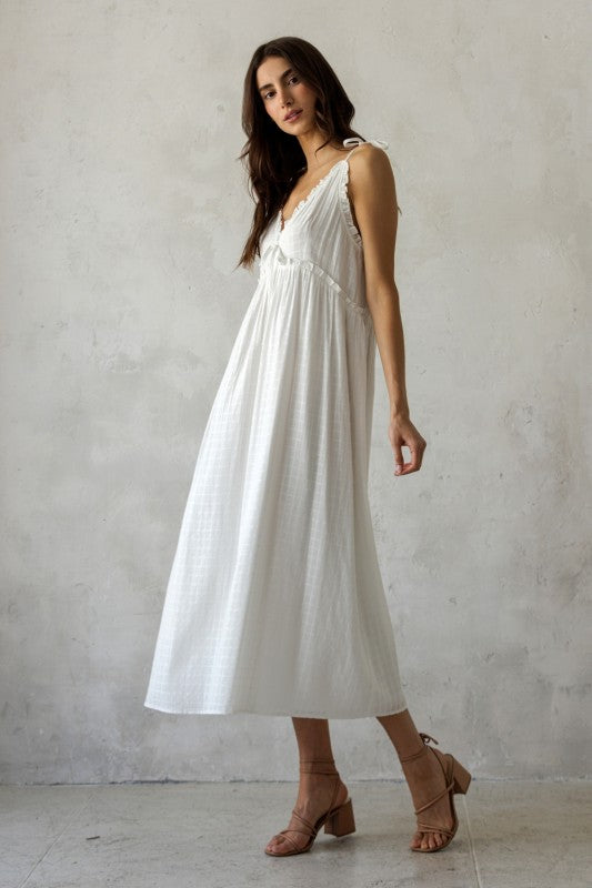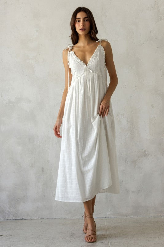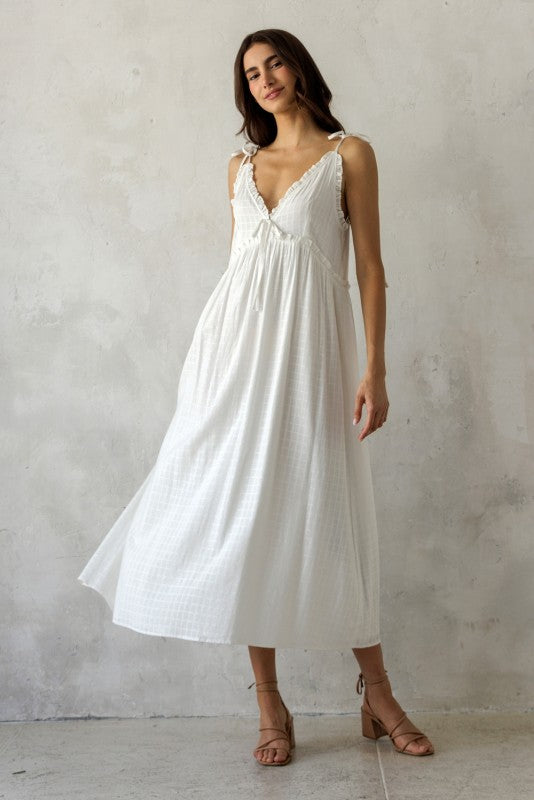 Embrace every moment in the Katie Ruffle Strap Maxi Dress! This 100% cotton masterpiece is perfect for brides, graduates, and any occasion in between. Its bump-friendly design ensures comfort and style, allowing you to celebrate every milestone with confidence and grace.