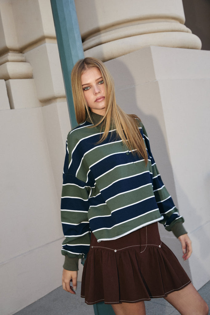 Embrace cozy vibes with the On The Road Again Top, featuring charming dark stripes and adorable little buttons. Perfect for layering, this collared must-have adds a playful touch to your fall wardrobe while keeping you stylish and comfy on every adventure.