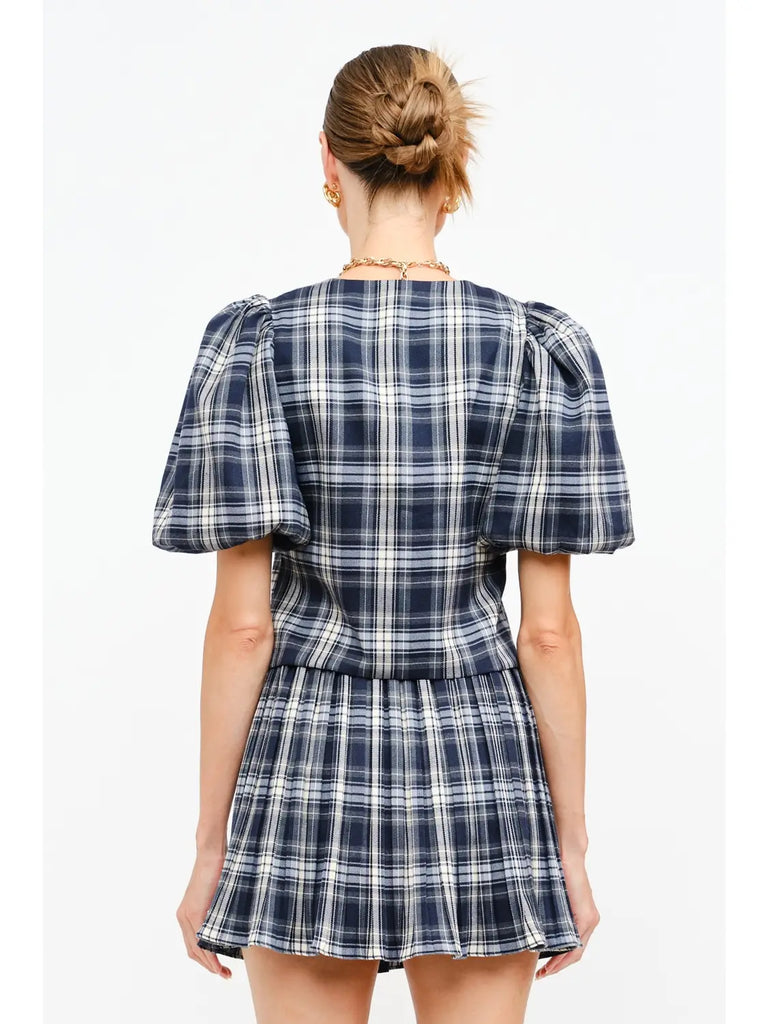 Elevate your holiday wardrobe with this stunning navy plaid pleated skirt! The timeless pattern and flattering pleats make it endlessly versatile—dress it up for festive gatherings or down for everyday charm. Mix and match with your favorite tops for countless outfit combinations, or grab the matching top to create a coordinated look that's absolutely picture-perfect. A wardrobe essential that works as hard as you do!