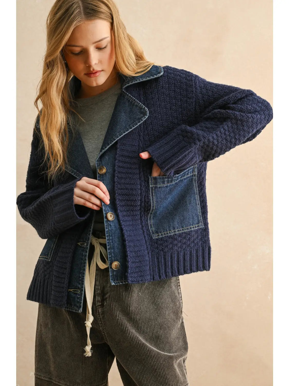The Canada Jacket blends cozy knit comfort with classic denim style for a look that's ready for anything. This denim and knit combo keeps you warm while letting your personality shine through—perfect for layering on chilly days or throwing on for casual adventures. Whether you're heading out for coffee or exploring the great outdoors, this jacket brings that fun, effortless vibe that makes getting dressed actually enjoyable.