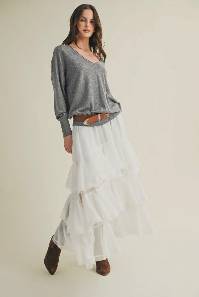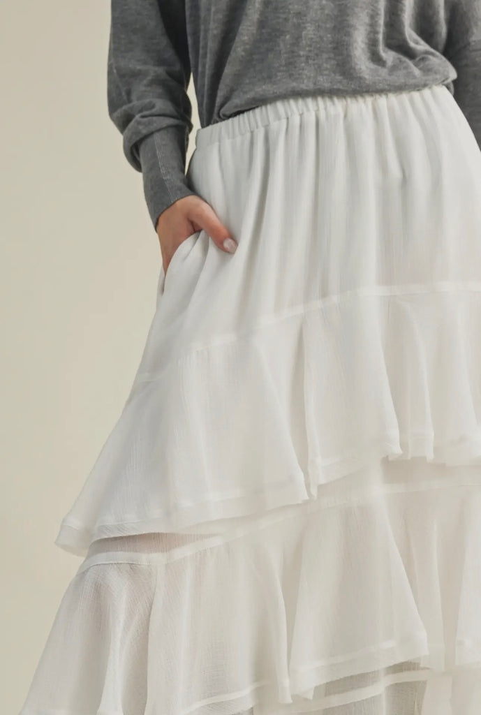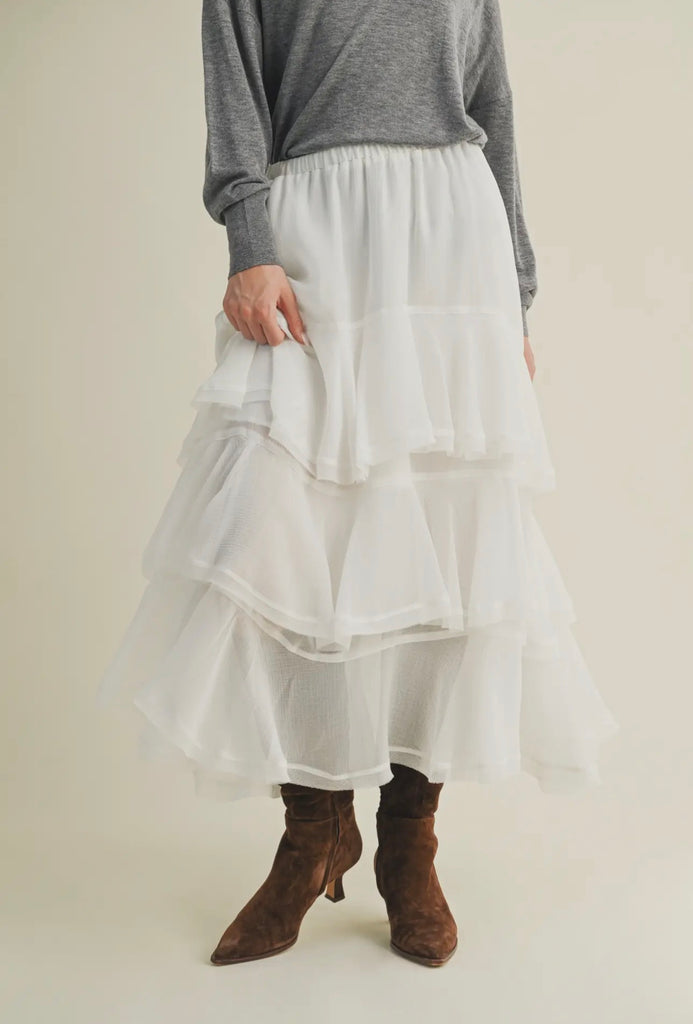 Elevate your autumn style with The Ruffle Me Skirt, your new versatile and chic layering piece. With its playful ruffle design, she will effortlessly elevate any outfit. The perfect addition to your elevated wardrobe.