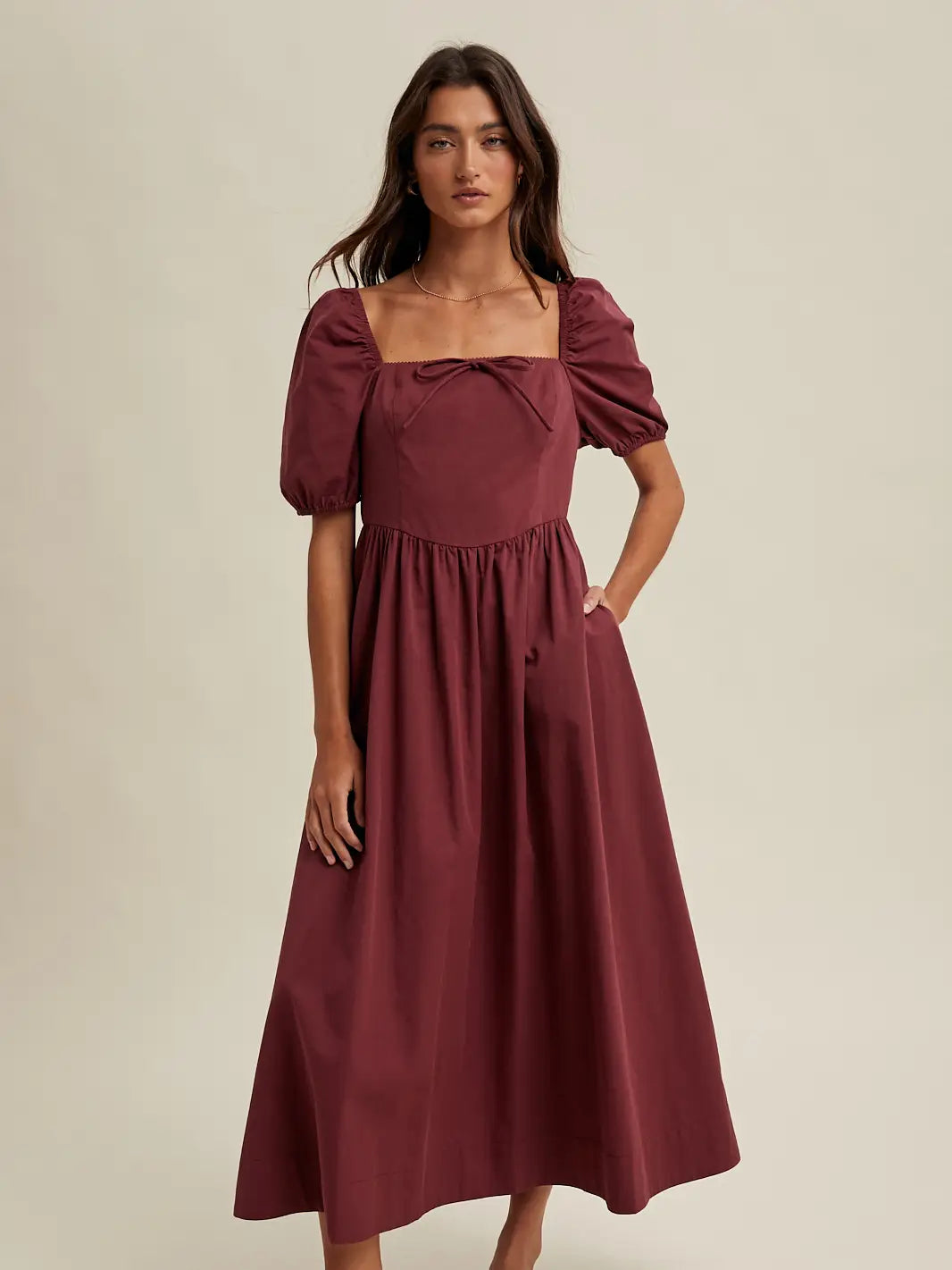 Sip your coffee and step out in style with The Sip and Shop Dress—a charming midi that effortlessly transitions from brunch to errands. Featuring trendy puff sleeves, a flattering square neckline, and a convenient back zip closure, this dress keeps you comfortable and chic. Lined short sleeves and hidden side pockets add practical elegance, while the sophisticated silhouette works beautifully for fall and winter. Whether you're grabbing your daily latte or running weekend errands, this versatile piece is your new go-to for casual, everyday wear.