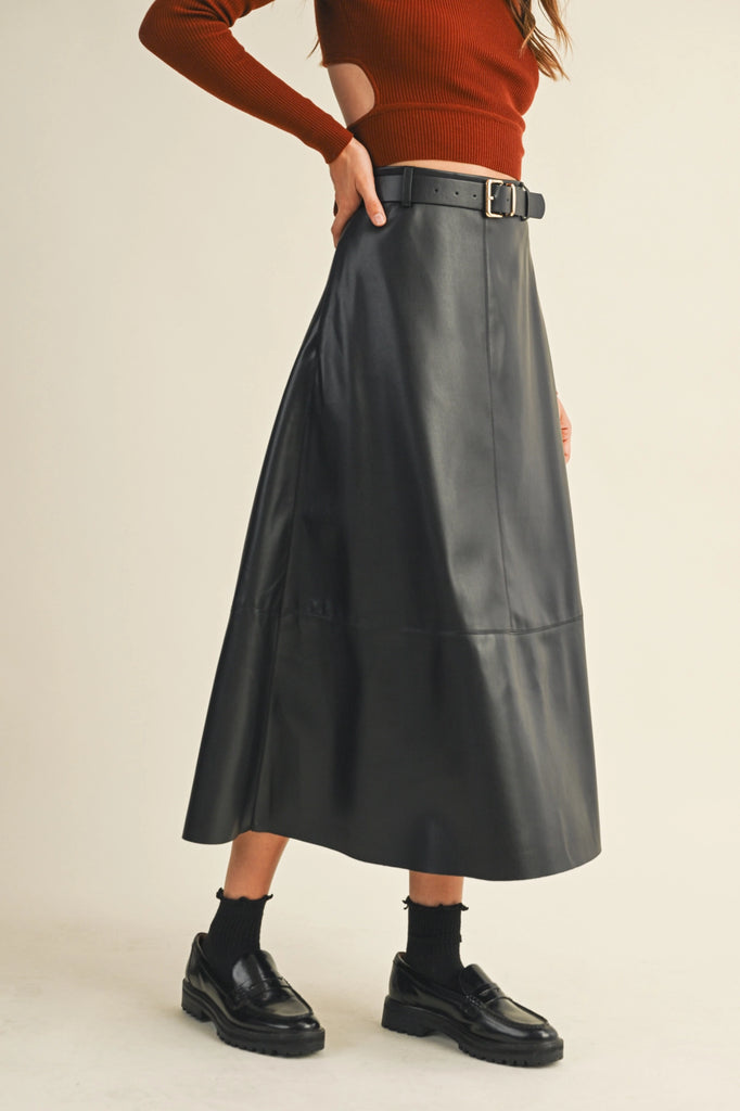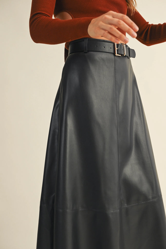 The Stephanie Skirt in a rich dark midnight color brings a playful twist to classic style. Featuring a flaire cut that sways with every step and a complementary belt to cinch your waist, it’s the perfect mix of fun and funky with a touch of class. Ideal for making a statement while keeping things effortlessly chic.