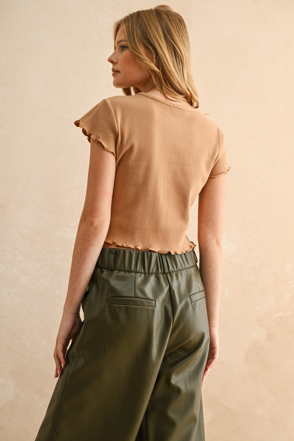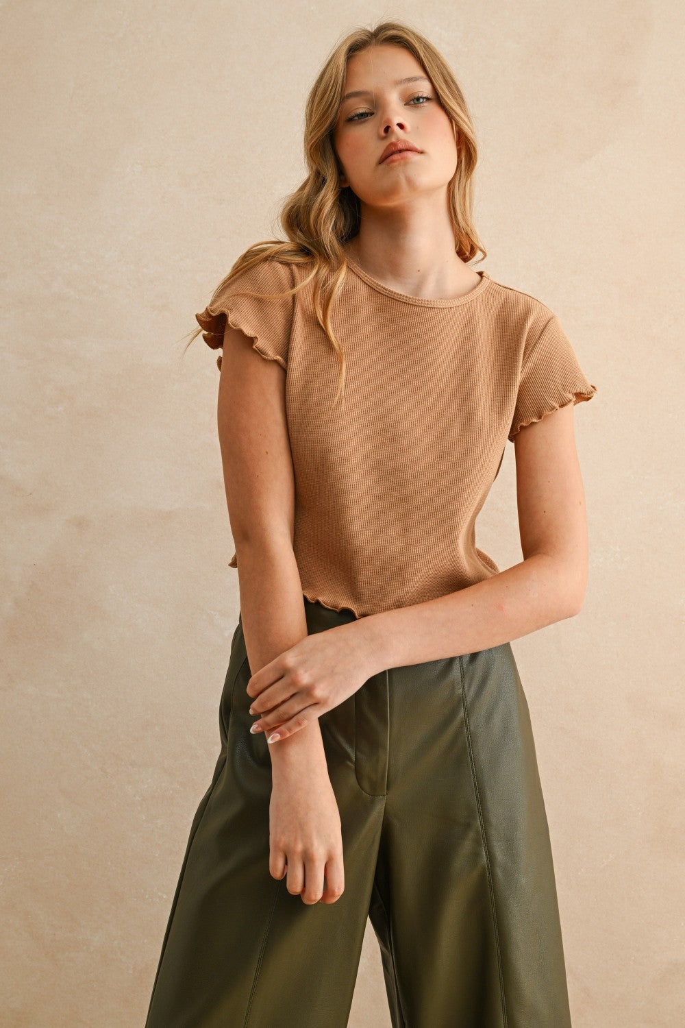 Miss Lady Mae Waffle Top in Beige