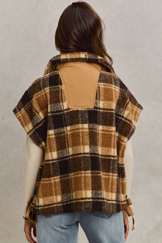 The Honey Bear Plaid Sherpa Vest